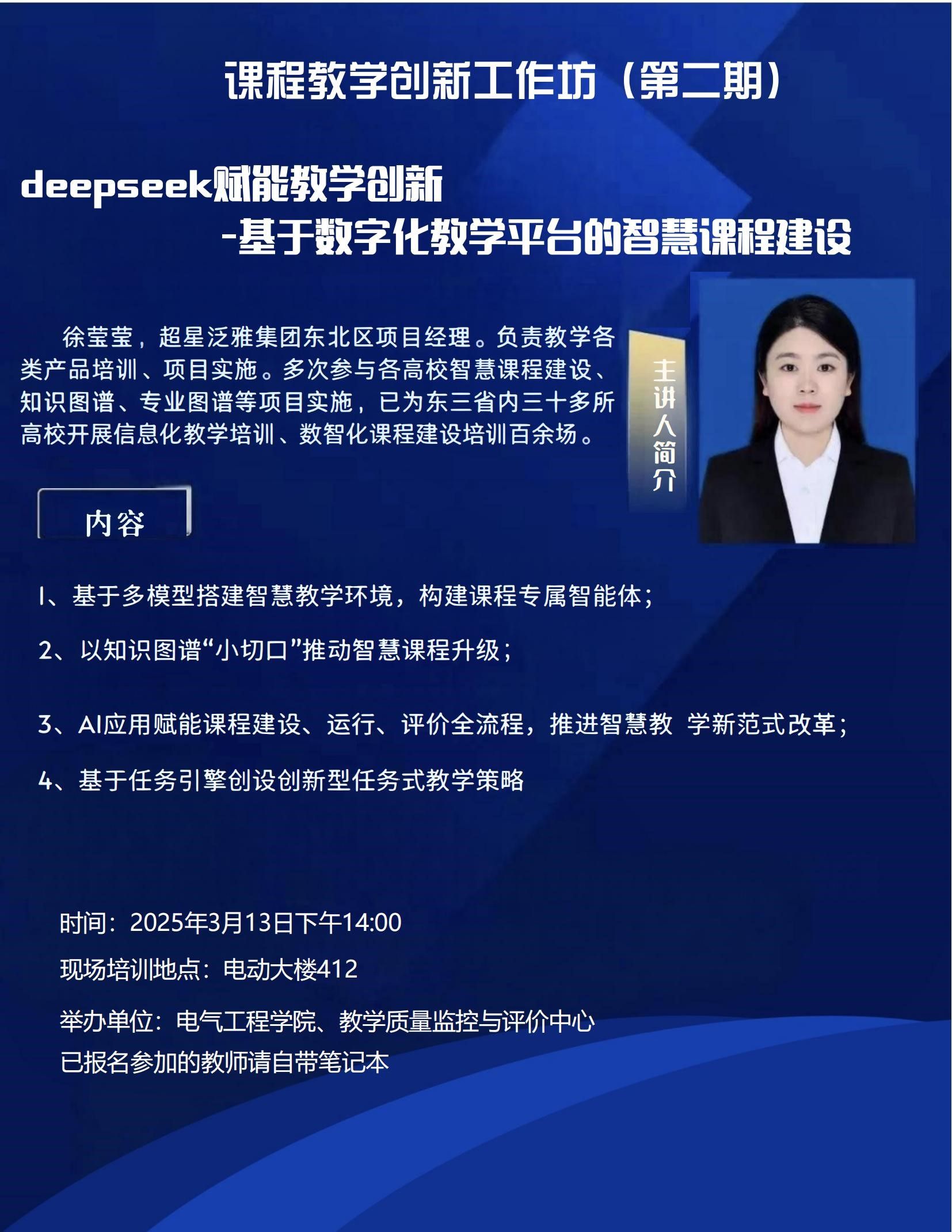 智慧课程建设工作的深入开展,充分利用包括DeepSeek在内的教育教学新技术提升人才培养的效率和质量,同时作为MG电子