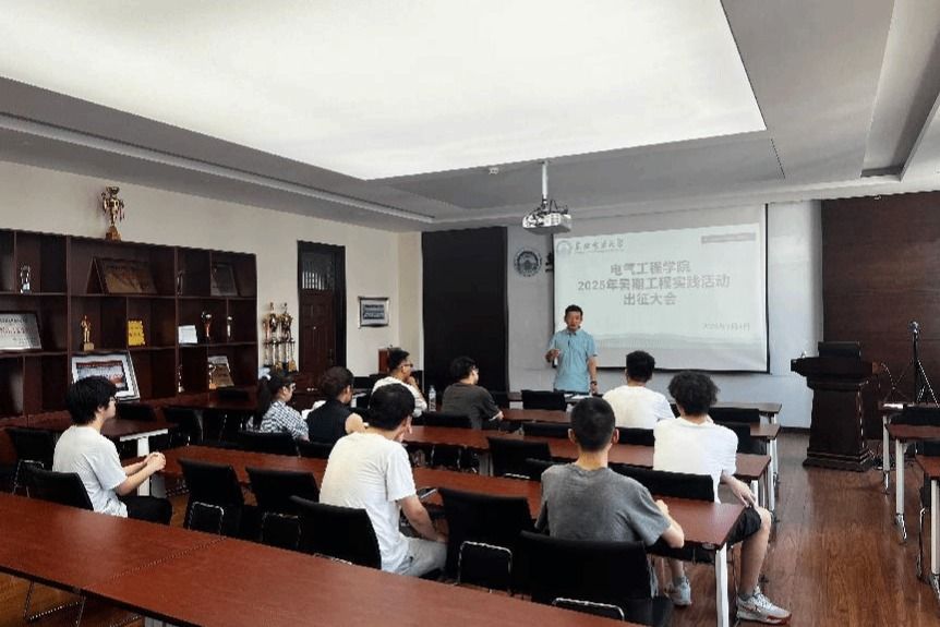 2025年暑期工程实践活动出征大会在电动大楼A412举行。此次大会为即将奔赴江苏金智科技股份有限公司、烟台东方威思顿电气有限公司、天宇电力设备有限公司等实习单位的大二、大三共19名学生壮行,助力他们在实践中实现理论与能力的深度融合。