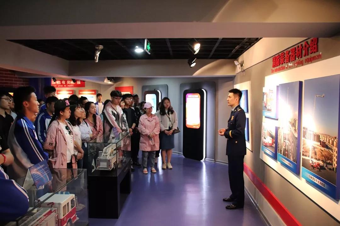 李金垚带领师生参观科普馆,他就防火知识、火灾案例、消防器材装备等向师生们做了详细介绍,师生对模拟安全逃生进行了体验。李参谋还结合多起因大学生消防意识缺乏而引发的火灾案例,强调树立消防安全意识的重要性。讲解结束后,师生们还参观了吉林市消防救援支队“队史馆”,通过学习吉林市消防救援支队历史和消防英雄事迹,更加牢固了“消防安全无小事”的思想意识。