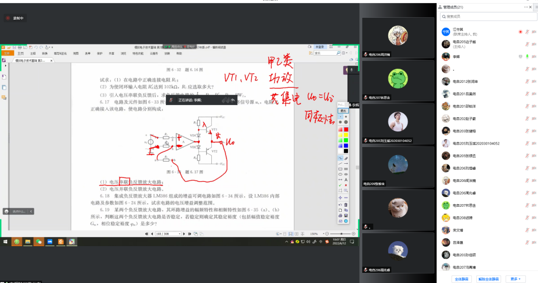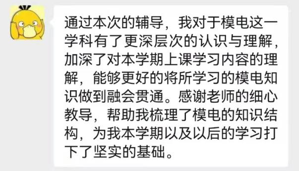 学生工作办公室进行了交流,确定需要帮扶的学生名单。受疫情影响难以进行线下教学,小组成员、支部党员李辉老师为了更好地帮助学生答疑解惑,精心准备了线上教学资源。李辉就《模拟电子技术基础》课程对19名学生开展了线上学业帮扶,按照“梳理知识点为主,举例及答疑为辅”的思路,通过线上辅导的方式帮助学生掌握课程脉络,熟悉课程重点,提升学习兴趣,让学生感受到MG电子