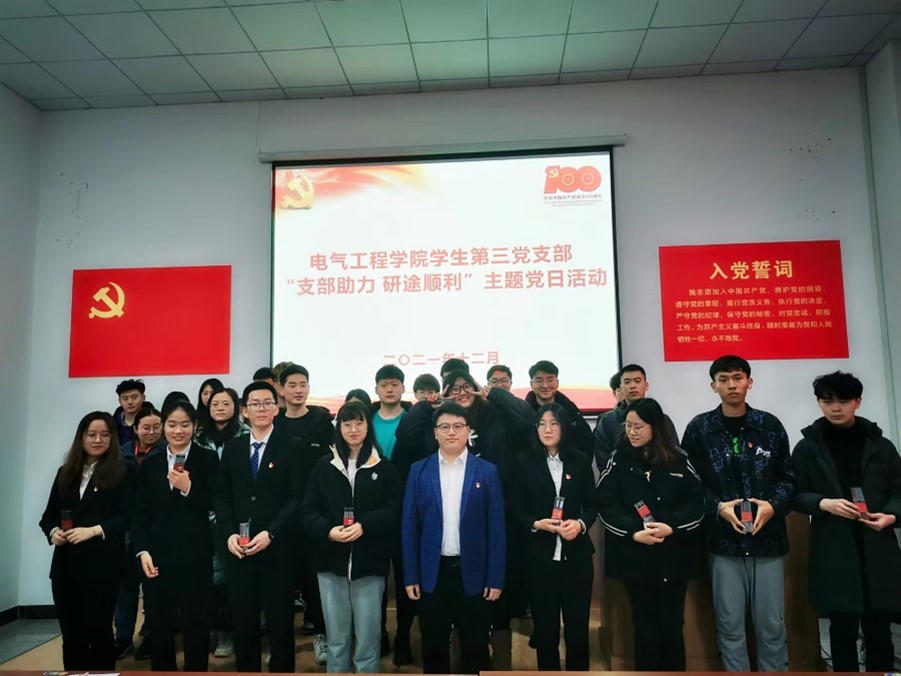 学生第三党支部现有党员44人,其中教工党员2人,学生正式党员18人、预备党员24人。面向电子信息工程、通信工程、智能电网信息工程3个专业开展工作。党支部设书记1人,组织委员1人,宣传委员1人,纪检委员1人。