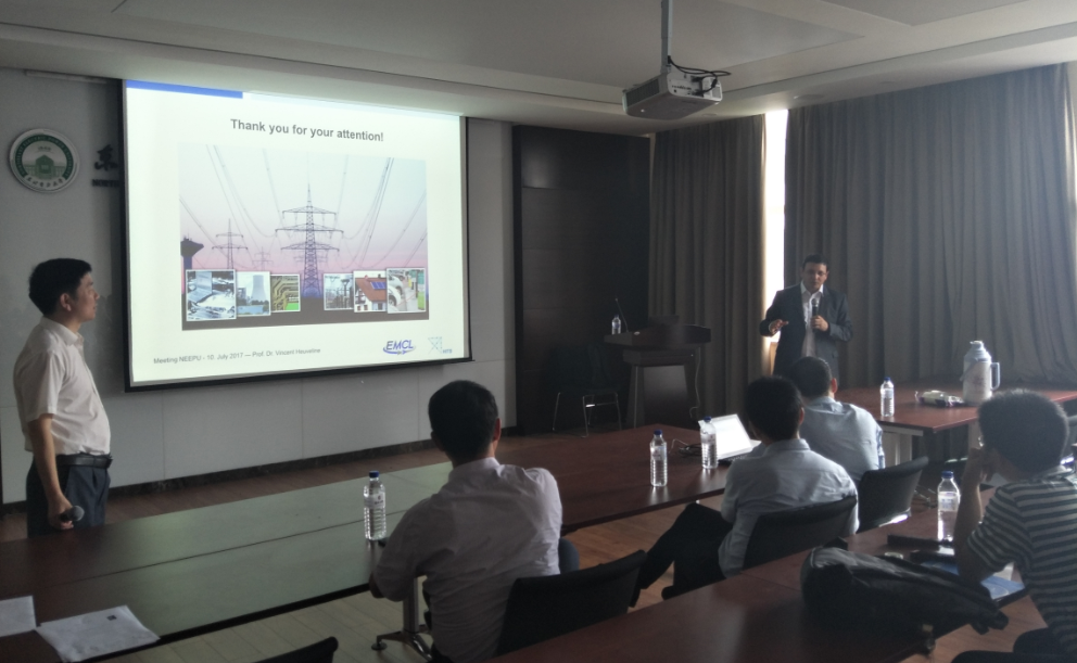 Vincent Heuveline教授的报告题目为《Optimal Storage Operation with Model Predictive Control in the German Transmission Grid》,主要围绕德国电网新能源接入问题及电力系统绝缘安全问题展开讨论。以最优潮流为基础,指出时间约束最优潮流(TCOPF, Time Constrained Optimal Power Flow)应用的必要性。另外,Vincent教授对德国海德堡大学的校园文化、学科专业、科研优势等方面做了相关介绍。