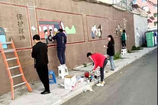 学生党支部与吉林市独立路社区携手开展“绘制多彩墙体,建设美丽江城”主题实践活动。