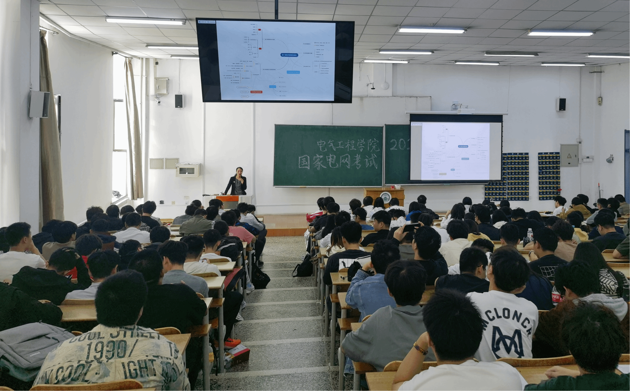 教师罗远翔作专题辅导报告,围绕国家电网考试大纲,详细梳理了考试重点难点及历年命题规律,通过分析考试趋势变化,对考点进行系统性归纳。其深入浅出的讲解和精准的备考建议,有效提升了学生对国网考试的认知水平,为科学备考提供了重要指导。
